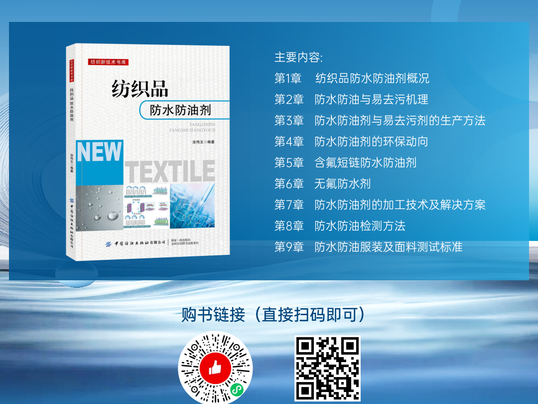由福可新資料(上海)無限公司開創人涂偉文師長教師,歷經2年多時候撰寫的手藝專著-《紡織品防水防油劑》,于2023年2月由中國紡織出書社出書刊行。該書是環球紡織行業第一本體系論述防水防油劑相干常識的專業冊本...[+排查概略]